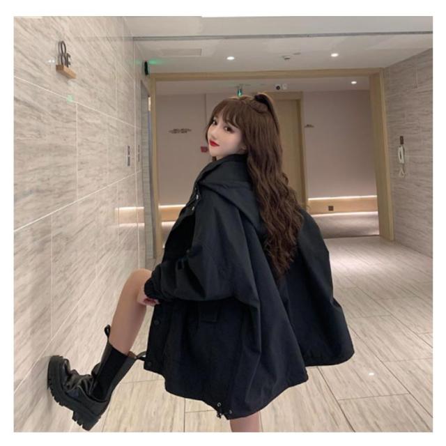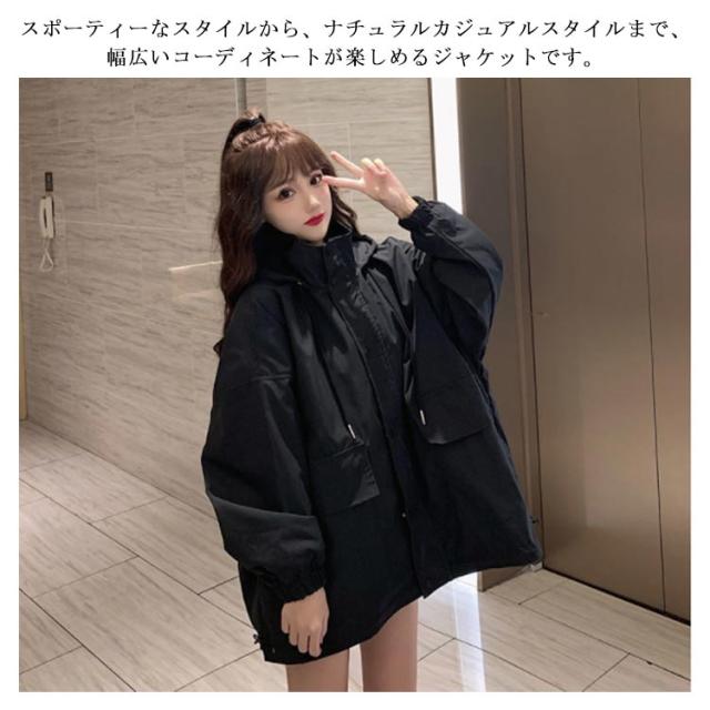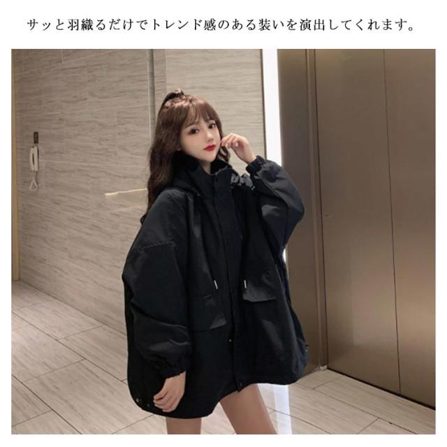 マウンテンパーカー レディース 撥水 ジャケット ライトアウター 春コート コート アウター 春 秋 アウター 薄手 ボリューム袖 パーカー フード付き オーバーサイズ ビッグシルエット ゆったり 撥水パーカー スプリングコート バルーン袖 黒