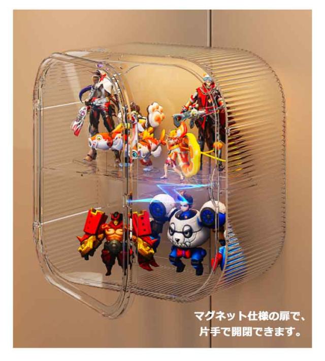 | 【2段 3段 選べる!】 【置く、壁に掛ける2WAY】 置く、壁に掛ける2WAYの使い方ができるコレクションケース。 2段 3段のステージデザインにより、コレクションをきれいに整然と表示できるため、視覚効果が向上します。 マグネット仕様の扉で、片手で開閉できます。 壁掛けタイプは、吊り下げヒモ不要のスッキリ仕様、付属の粘着シールがケースを固定します。 ホコリから守るだけでなく、より可愛く・華やかに。 上にも物を置けるので、ちょっとした小物をディスプレイするのも◎ ガシャポン人形やフィギュアなどのコレクションケースです。カラーも4種類あるのでお部屋の雰囲気に合わせられておススメです。 | |