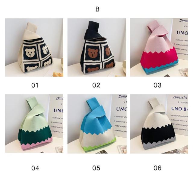SNS人気 ニット トートバッグ レディース ニットバッグ ミニトート マルシェバック 小さめ バッグ かばん 鞄 エコバック ミニバック トート サブバッグ おしゃれ 韓国 雑貨 ミニトートバッグ 手提げ ニットエコバッグ クロシェ編み ハンドバッグ