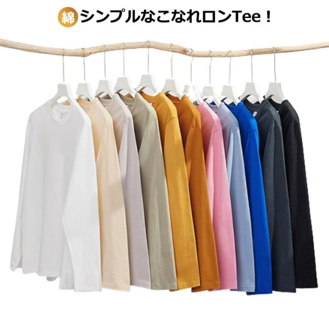ロンT レディース メンズ 綿 tシャツ 大きいサイズ 長袖 重ね着 ロングTシャツ トップス ロンT Tシャツ インナー 春 秋 ゆったり 無地 コットン 男女兼用 カジュアル オーバーシルエット 古着風 くすみカラー