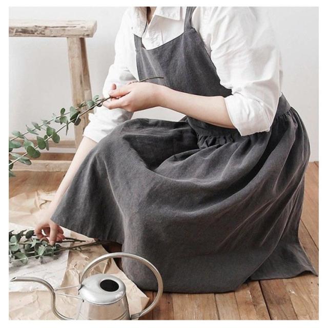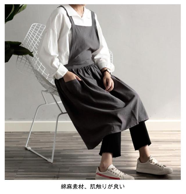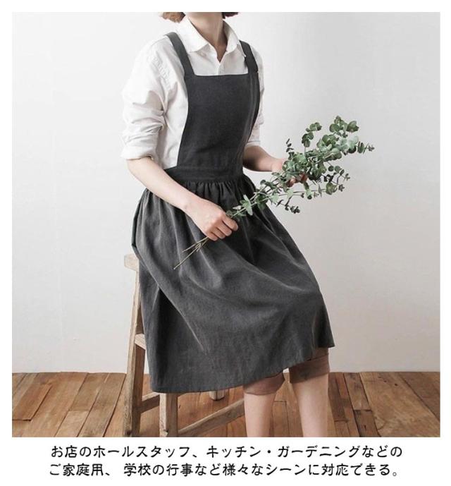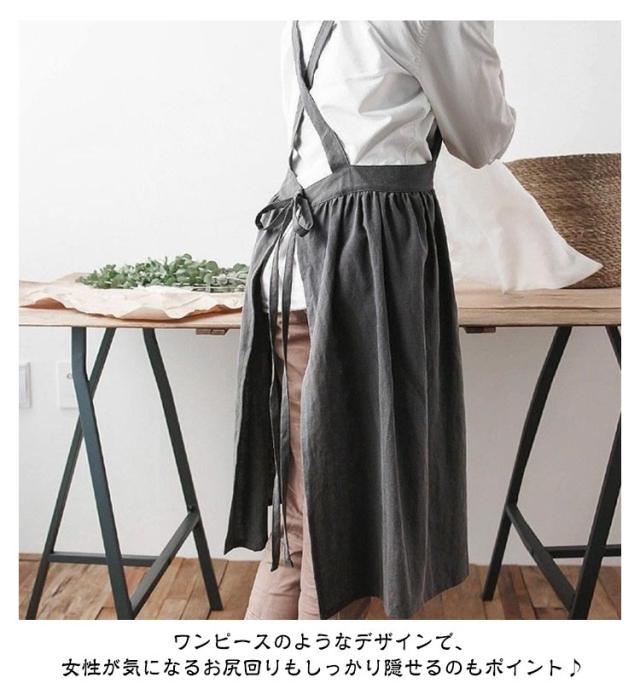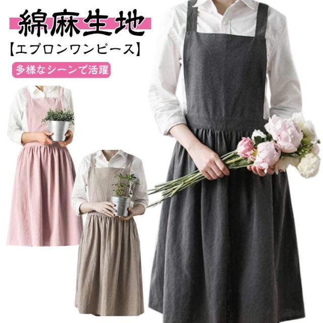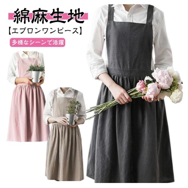 エプロン おしゃれ かぶるだけ 綿麻 カフェ風 着脱簡単 業務 大きいサイズ ワンピース 保育士 作業エプロン 脱着簡単 大人エプロン 家庭 作業 料理用 ゆったり ロング 長め かぶり シンプル 食事 仕事 無地 コットン リネン 柔らかい プレゼント