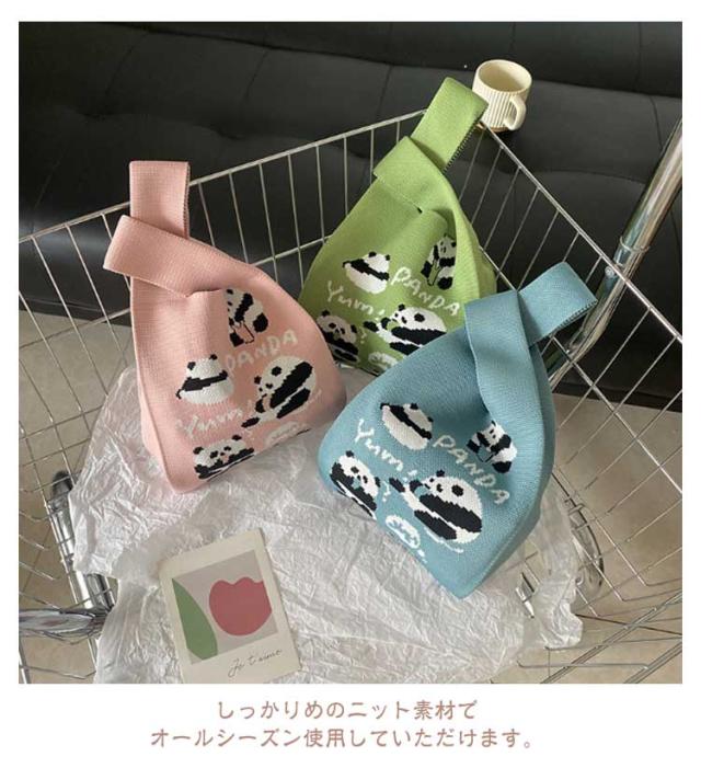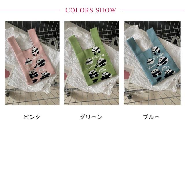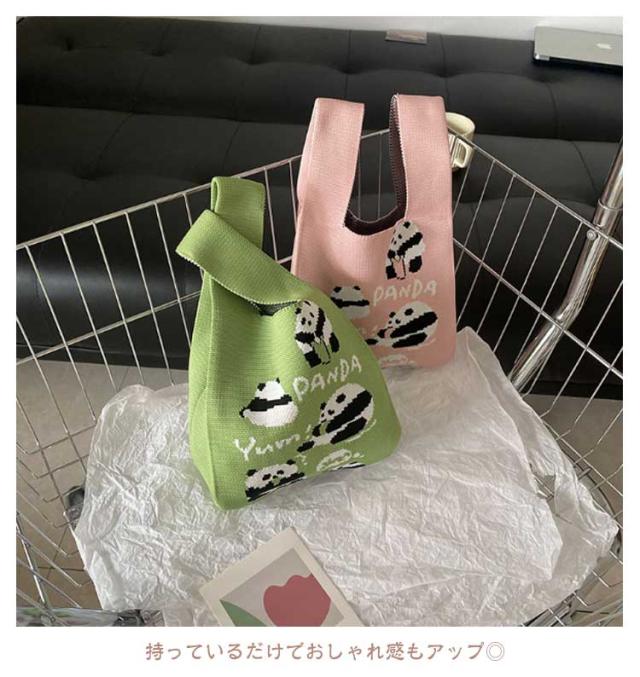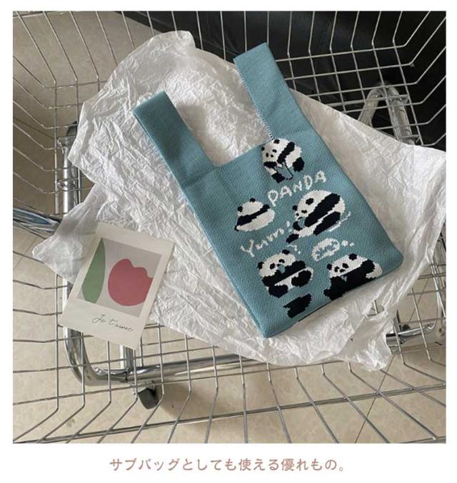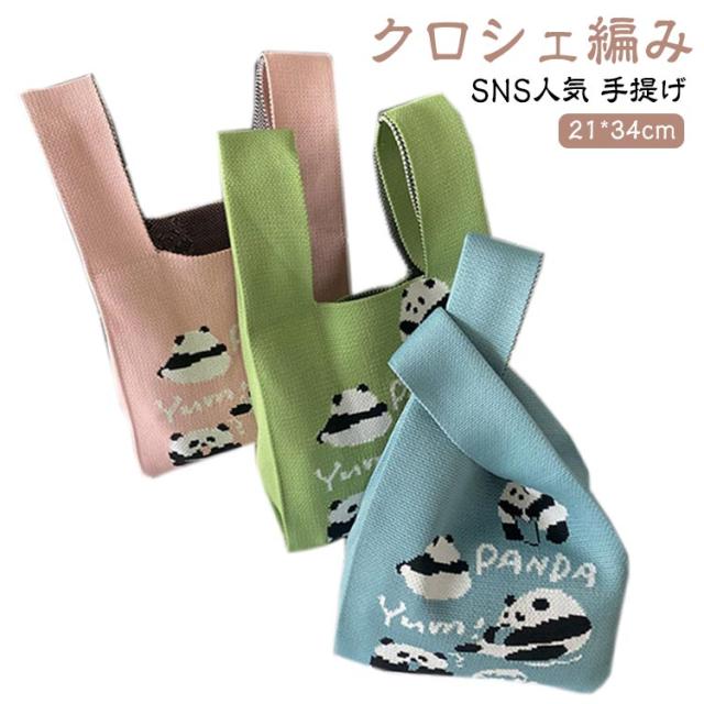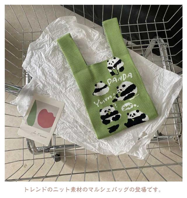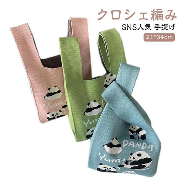 ニットバッグ かわいい ニット バッグ トート マルシェバッグ 縦型 クロシェ編み ハンドバッグ レディース ミニバッグ 韓国 可愛い パンダ マルシェ ニットマルシェバッグ エコバック ニットトート ニットトートバッグ ミニトート かばん