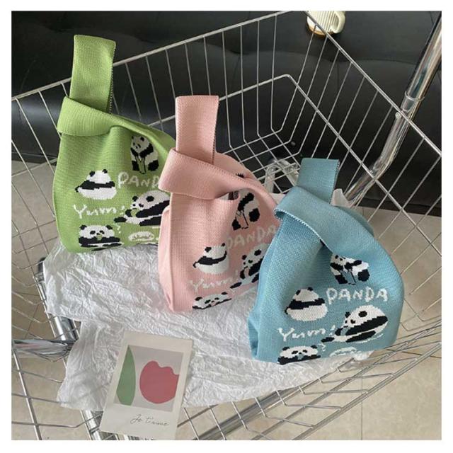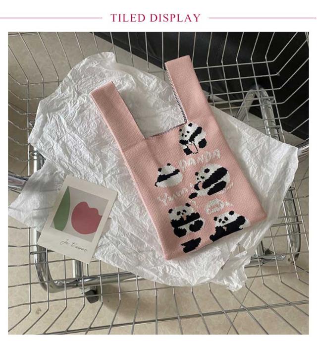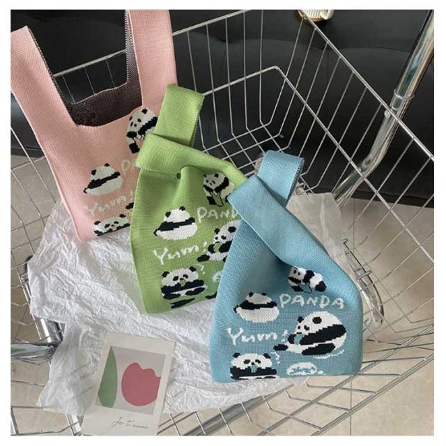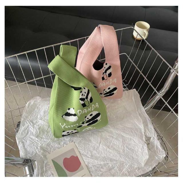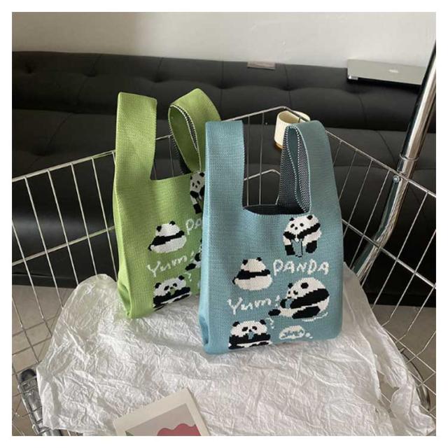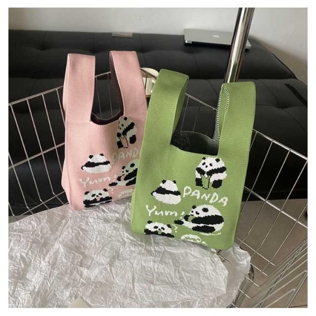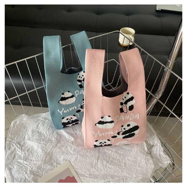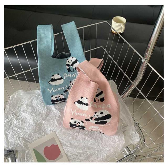 ニットバッグ かわいい ニット バッグ トート マルシェバッグ 縦型 クロシェ編み ハンドバッグ レディース ミニバッグ 韓国 可愛い パンダ マルシェ ニットマルシェバッグ エコバック ニットトート ニットトートバッグ ミニトート かばん