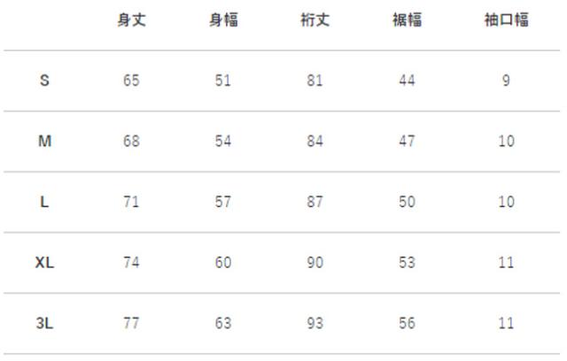 サイズ:身長 / チェスト / ウエスト
