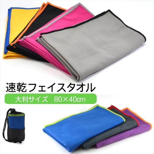 【防災タオル 災害対策】 速乾 タオル 大判 マイクロファイバー 80×40cm 収納袋付き スポーツタオル フェイスタオル コンパクト 吸水性 旅行 アウトドア プール