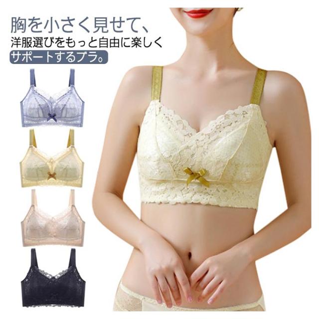 胸を小さく見せるブラ ブラジャー 大きいサイズ ノンワイヤーブラ 脇高 補正下着 着痩せ レース 大きな胸を小さく見せるブラ フルカップ 脇肉 背中 スッキリ レディース