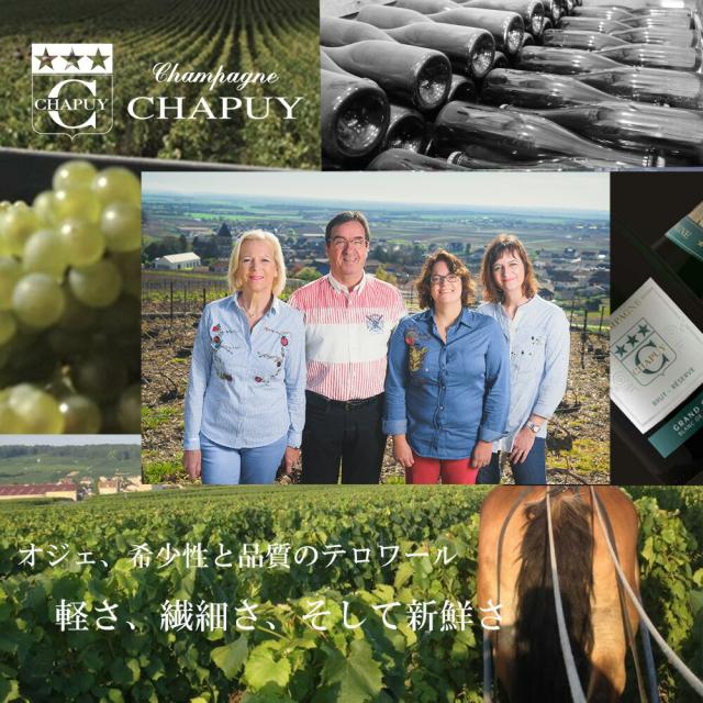 シャンパーニュ地方でも特に優れたシャルドネを生み出す銘醸地、コート・デ・ブランのオジェ村に位置する家族経営のワイナリーです。シャピュイ家はフランス革命の時代から既にオジェでワイン造りを行い、地元の市長も務めるなど、この地と関わりの深い一族です。「最高級のシャンパーニュをお手頃な価格で」の経営理念の元、1952年より当時の当主セルジュによりシャンパーニュの生産がはじめられ、現在は息子のセルジュが後を継ぎ経営を行なっております。 シャピュイが畑を持つオジェ村が位置するコート・デ・ブラン地区はシャンパーニュの中でも特に優れた石灰質土壌で、地表のすぐ下に石灰質が広がります。この石灰質の豊富なミネラル分により、複雑な味わいのシャルドネが生み出されます。また、オジェ村の他、ヴァレ・ド・ラ・マルヌにあるモンテロンと、コート・ド・セザンヌにも畑を所有します。古いもので樹齢は50~60年。畑を耕すのはトラクターと馬を併用し行います。こうすることにより土壌が圧縮されずに、土中の微生物環境も最適に保たれます。 圧搾後、果汁を3漕に分けます。シャピュイのシャンパーニュで使用するのは2050?のテット・ド・キュヴェのみ。プルミエ・タイユはネゴシアンへ、残りの果汁はマールとして使用する業者に売却します。シャルドネの酸度や、フィネスを保つため、マロラクティック発酵は行いません。畑ごと、葡萄品種ごとに、別々のタンクで一次発酵させます。リキュール・デクスペディションはシャルドネをベースとしたリキュールを使用しています。 【私たちの環境への取り組み】高環境価値 (HVE3) は、ブドウ園の一般的な環境認証システムの最高レベルです。 これは、Grenelle de l’Environnement (2007 年の生態持続可能な開発省の決定) に基づく唯一の持続可能なブドウ栽培認証です。これは法律に準拠した正式なプロセスであるため、認証を取得するには不動産全体に対して非常に厳格な監査を実施する必要があります。これは、ワイン生産者が実践する特に環境に優しい慣行を特定し、促進することを目的とした自主的なアプローチです。したがって、シャンパーニュ・シャピュイは、ワイン生産者が殺虫剤を排除できるようにするバイオテクノロジー技術である性的混乱を利用しています。これには、昆虫をフェロモンと混同し、繁殖を妨げることが含まれます。- 私たちはブドウの栽培とワインの生産における生態系を尊重します。ブドウ畑の開発によって生物多様性が促進され、動植物が保護されます。- 私たちは、ブドウ畑に自然に草を植えるなど、ワイン栽培の景観の美しさを保つことに貢献しています。これにより、草、花、ブドウの木がテロワールに調和のとれたバランスの取れたパノラマを形成します。 | ![]() ■ぶどう品種:シャルドネ50%/ ピノ・ノワール25%/ ピノ・ムニエ25% ■発酵・熟成:畑ごと、葡萄品種ごとに、別々のタンクで一次発酵/ リキュール・デクスペディションはシャルドネをベースとしたリキュールのみを使用/ステンレスタンク発酵/ 瓶内二次発酵/ 瓶熟48ヶ月後デゴルジュマン ■リキュール・デ・エクスペディション:9g/L 高級シャンパーニュ辛口辛口愛好家大注目!シャンパーニュの中でもシャルドネの銘醸地として名高いグラン・クリュ「オジェ村」コート・デ・ブランのオジェ村に位置する家族経営のワイナリー!当店でも大人気のシャピュイから創立70周年(シャピュイがシャンパーニュを造り始めてから70周年)を記念した造り手の最高峰特別キュヴェ!70周年を記念した特別なシャンパーニュ! 全世界にわずか2016本のみの限定作品!造り手は、シャンパーニュ地方でも特に優れたシャルドネを生み出す銘醸地、コート・デ・ブランのオジェ村に位置する家族経営のワイナリー!シャピュイ家はフランス革命の時代から既にオジェでワイン造りを行い、地元の市長も務めるなど、この地と関わりの深い一族! ゴーミヨ誌は、『熟成のピークにあるシャンパーニュで、フレッシュさが力強さとヴィニシティのバランスをとっている。特別な日にシャンパンだけで楽しむのに最適。』と大絶賛コメント! 70周年を記念した特別なシャンパーニュ!全世界にわずか2016本のみの限定作品!シャンパーニュ愛好家垂涎の限定作品が記念箱入りで極少量入荷! |