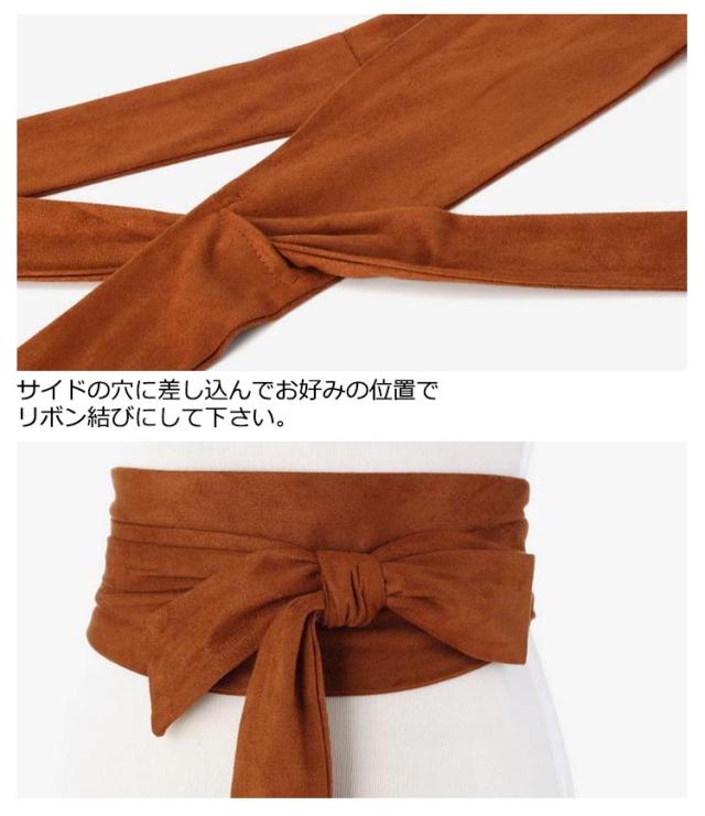 | マストハブアイテムとなったサッシュベルト。 いつものスタイリングにプラスするだけで着こなしのオシャレ偏差値を上げてくれます。 ウエストにくるっと巻くだけでマニッシュで大人な雰囲気に包まれます 柔らかなスェード調は上品でシックにまとめてくれます。 自分らしいアレンジを楽しめる二重巻きのデザインです。 体にフィットしてくれるサッシュタイプは自分好みに調整できます。 女性らしいシルエットをキレイに出してくれるのも嬉しいポイント。 サイドの穴に差し込んでお好みの位置でリボン結びにして下さい。 | |