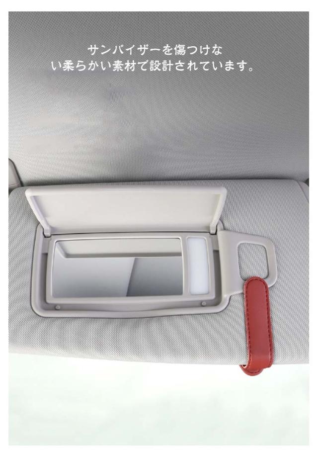 | メガネホルダー・サッと取れて邪魔にならない! フック式でサンバイザーに挟むだけで取り付け可能。 高品質PUレザーを使用し、優れた耐久性と高級感を兼ね備えています。 サンバイザーを傷つけない柔らかい素材で設計されています。 強力マグネットを内蔵し、運転中の振動で落ちることなく、確実に保持します。 サングラスだけでなく、カードや駐車券も一緒に保管可能。必要なアイテムをすぐに取り出せるようになります。 車のインテリアになじむシンプルなデザインです。 | |