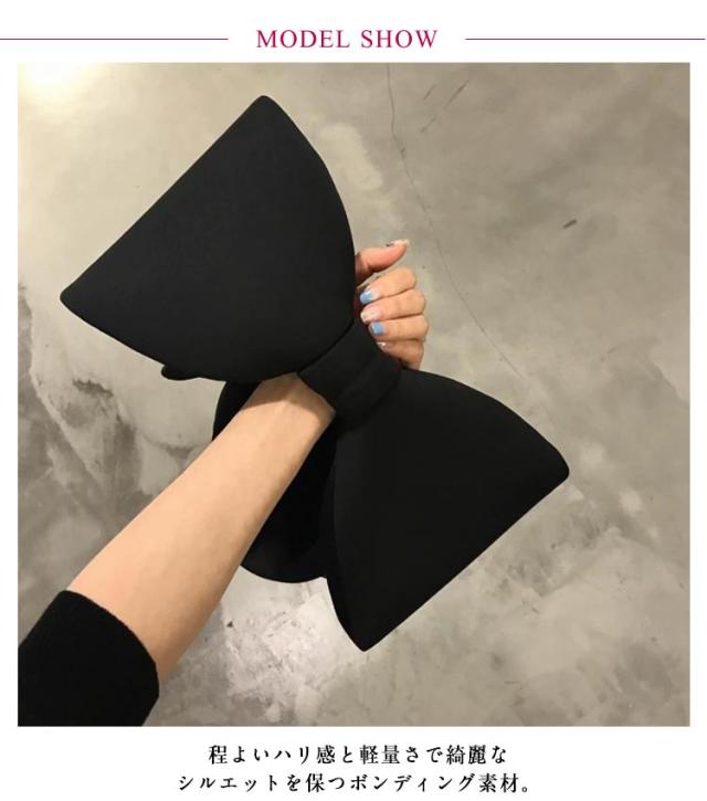 | ショルダー部分が大きなリボンになったインパクトあるハンドルバッグです。 程よいハリ感と軽量さで綺麗なシルエットを保つボンディング素材。 大きなリボンをデザインし、レディライクな印象とアクセントをプラスする大胆な仕上がりが魅力。 甘すぎず、程よくフェミニンに。モードスタイルに取り入れても◎。 普段使いからパーティー、結婚披露宴、女子会、デート、ちょっとしたお出掛けなど大活躍なアイテムです。 | |