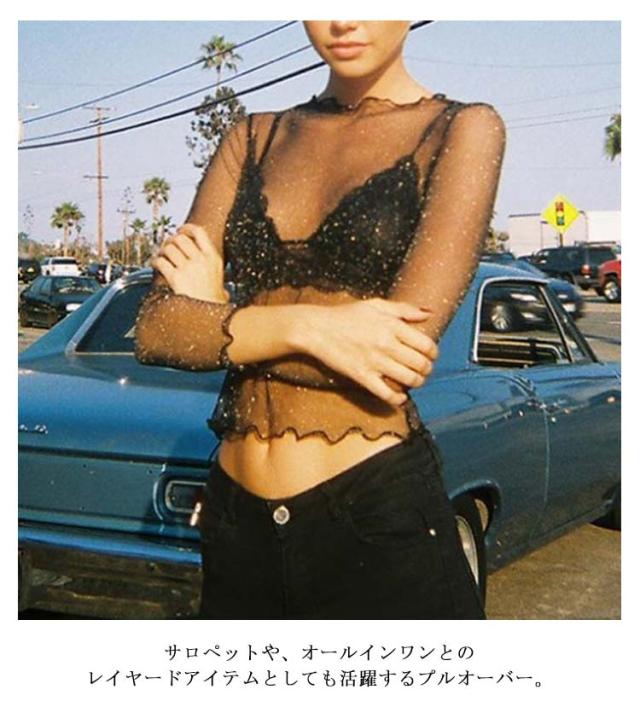 送料無料 シアーインナー レディース シアートップス ボートネック シアー トップス シースルー ラメ入り シアーインナー 透け感 メロウフリル ブラウス インナー 重ね着 レイヤード 韓国ファッション インナー カットソー フレア袖 肌見せ 透け感