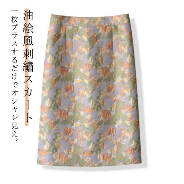 油絵風刺?スカート ジャカード タイトスカート ペンシルスカート 新型復古 スカート 花柄 キレイめ 通勤 エレガント 送料無料