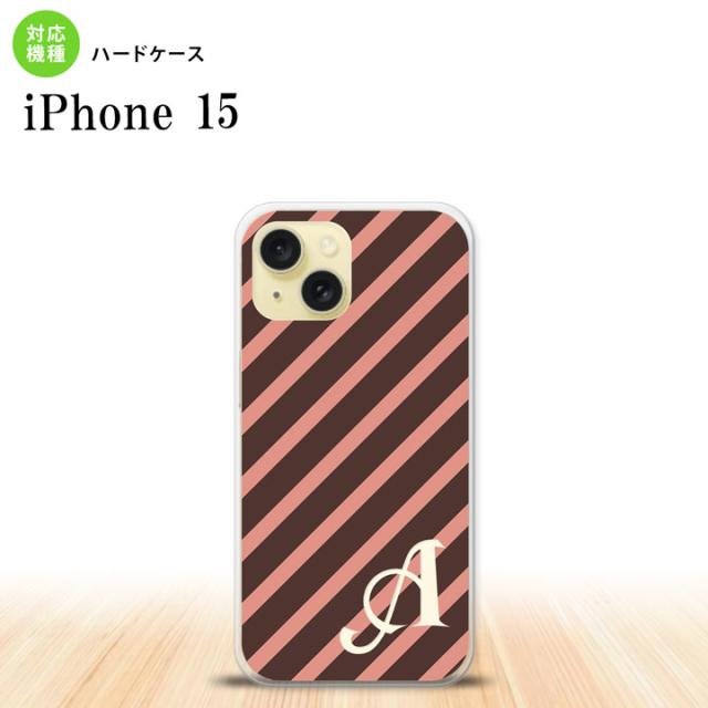 iPhone15 iPhone15 スマホケース 背面ケース ハードケース ストライプ 茶 ピンク +アルファベット 2023年 9月発売 nk-i15-714i