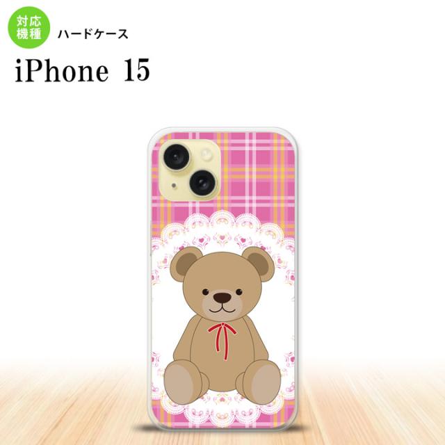 iPhone15 iPhone15 スマホケース 背面ケース ハードケース くま チェック レース ピンク 2023年 9月発売 nk-i15-756