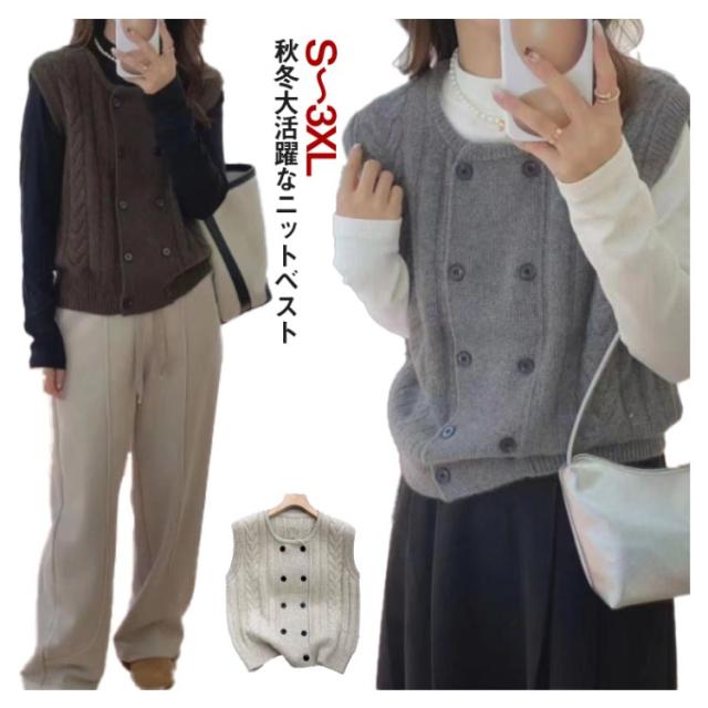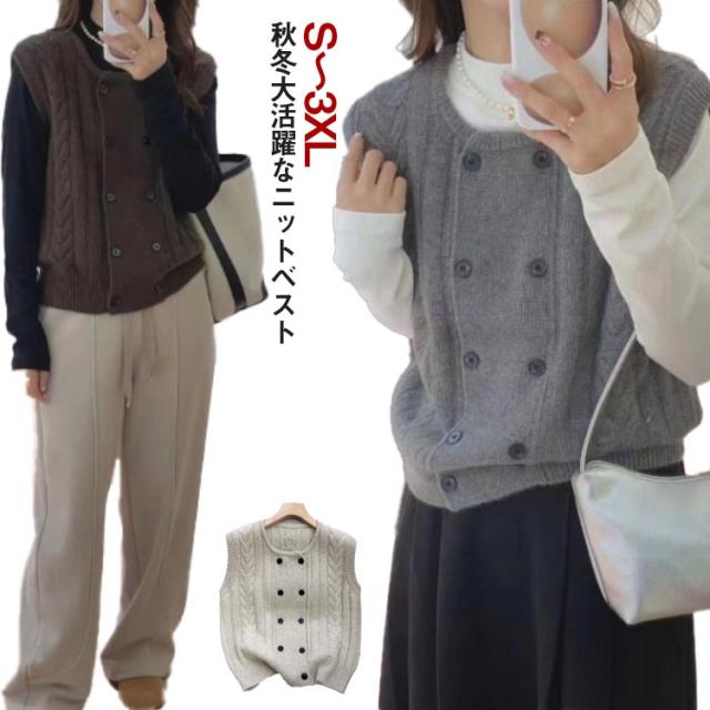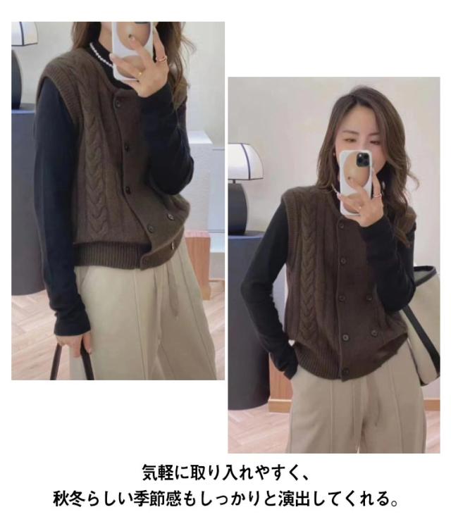 ニットベスト レディース ベスト トップス ざっくり 秋冬 重ね着 レイヤード ニット カジュアル おしゃれ OL オフィス シンプル ワンマイルウェア ケーブル編みニットベスト 大きいサイズ 無地 袖なし 春 防寒 柔らかい 通勤 通学 送料無料 ギフト 女性