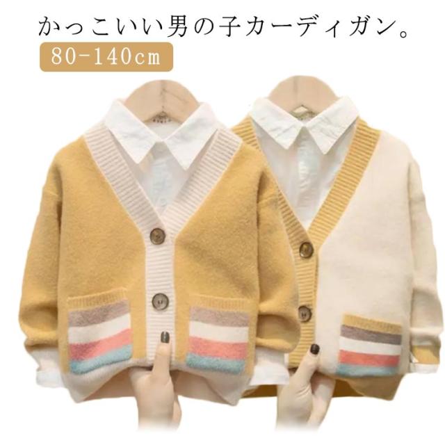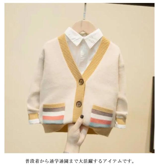 送料無料 子供服 Vネック ニット カーディガン 中厚 キッズ ジュニア 子供 男の子 ニットカーディガン 保育園 通園 新入園 新入学 子供服 発表会 羽織り 長袖 アウター 春 秋 80−140cm