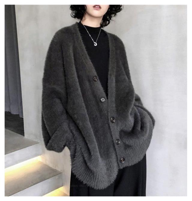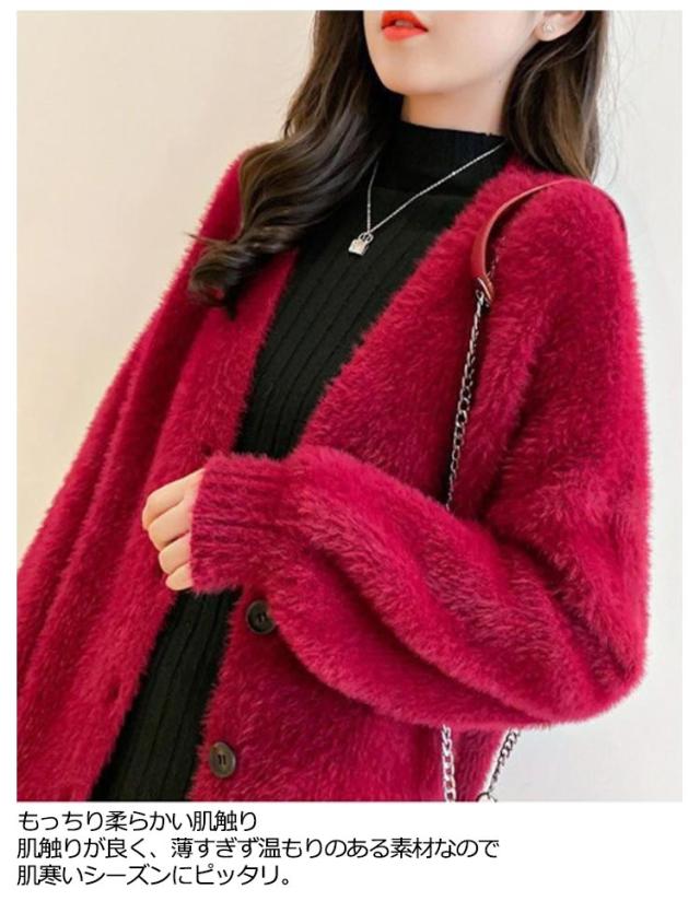 フェイクファー モコフワ カーディガン レディース ルーズシルエット 春 秋 冬 コーデ ふわふわ フワフワ ニット 長袖 おしゃれ 厚手 ファッション 着こなし カジュアル ブラック グレー ブルー オトナ 大人 かわいい トップス 送料無料