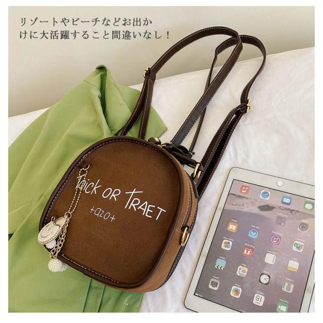 | フロントのハロウィーンストラップが大人可愛いミニリュックです。 ショルダー上部の中央を引き上げるだけで、ショルダーバッグとしても使える2way仕様♪ 小物の整理に便利!長財布なども楽々入り、普段使いにもおすすめの収納力です♪ カジュアルな雰囲気のpuレザー素材なのに品よく持てる、今季の本命バッグ。 リゾートやビーチなどお出かけに大活躍すること間違いなし! | |