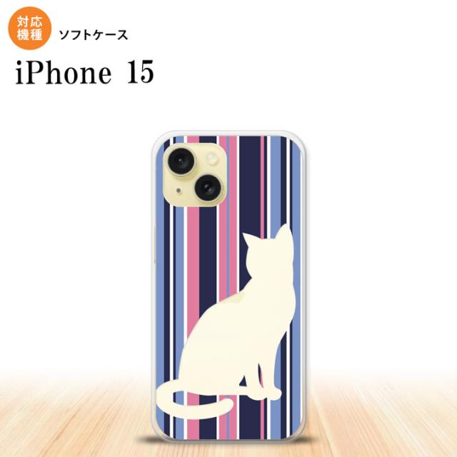 iPhone15 iPhone15 スマホケース 背面ケースソフトケース 猫 ボーダー A 青ピンク 2023年 9月発売 nk-i15-tp965