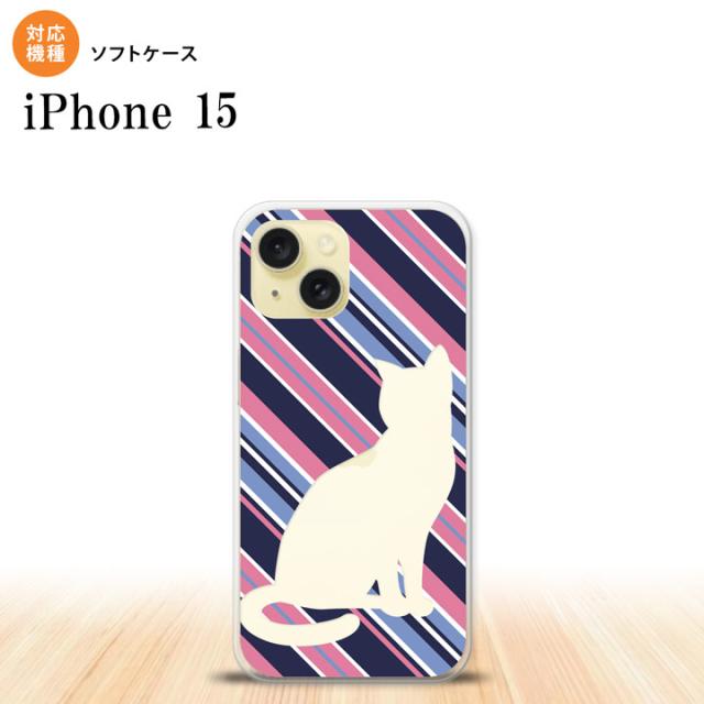 iPhone15 iPhone15 スマホケース 背面ケースソフトケース 猫 ボーダー B 青ピンク 2023年 9月発売 nk-i15-tp966