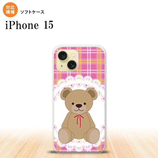 iPhone15 iPhone15 スマホケース 背面ケースソフトケース くま チェック レース ピンク 2023年 9月発売 nk-i15-tp756