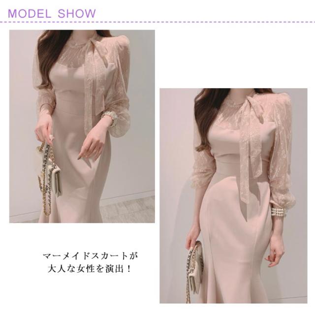 パーティードレス お呼ばれドレス 結婚式ドレス タイトドレス マーメイドワンピース マーメイド マーメード 韓国 結婚式 ワンピース ロング丈 異素材 レース おしゃれ 同窓会 成人式 20代 30代 40代 黒 ピンク ボウタイ 春 夏 秋 冬 長袖 可愛い お呼ばれ 二次会 披露宴