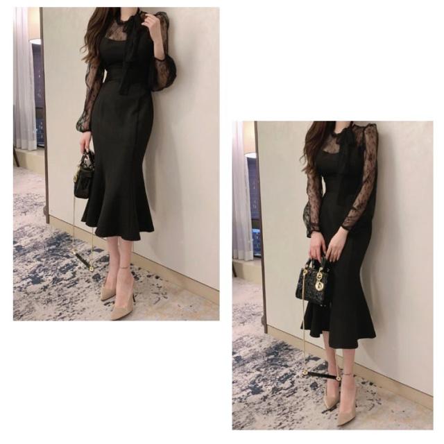 | S M L!おしゃれで上品なドレスワンピースです。 マーメイドスカートが大人な女性を演出! 透け感のあるパフスリーブとアンバランスなマーメイドシルエットでムードUP! 結婚式や演奏会などフォーマルな空間のドレスコードにおすすめです。 とっても可愛い韓国ファッションのワンピース!ドレス! | |