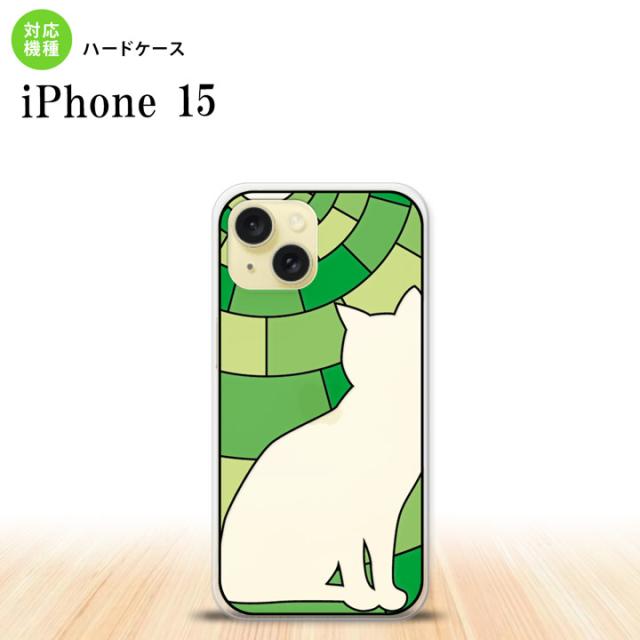 iPhone15 iPhone15 背面ケース カバー ステンドグラス風 おしゃれ 猫 グリーン ステンドグラス風 2023年 9月発売 nk-i15-sg35