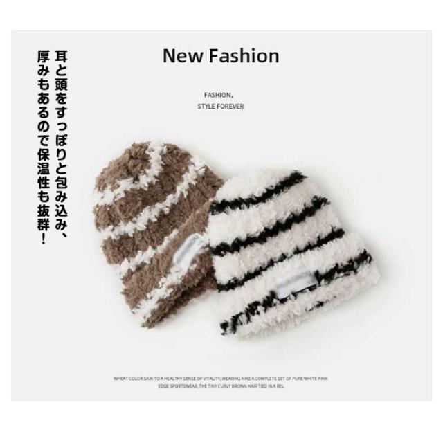 ボーダー ハット ニット帽 レディース 秋冬 ハット ファー ニット 暖かい 防寒 軽量 帽子 ファーハット バケハ 厚手 長毛ファー ふわふわ モコモコ 保温性抜群 かわいい お洒落 送料無料