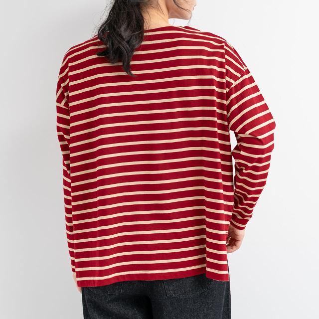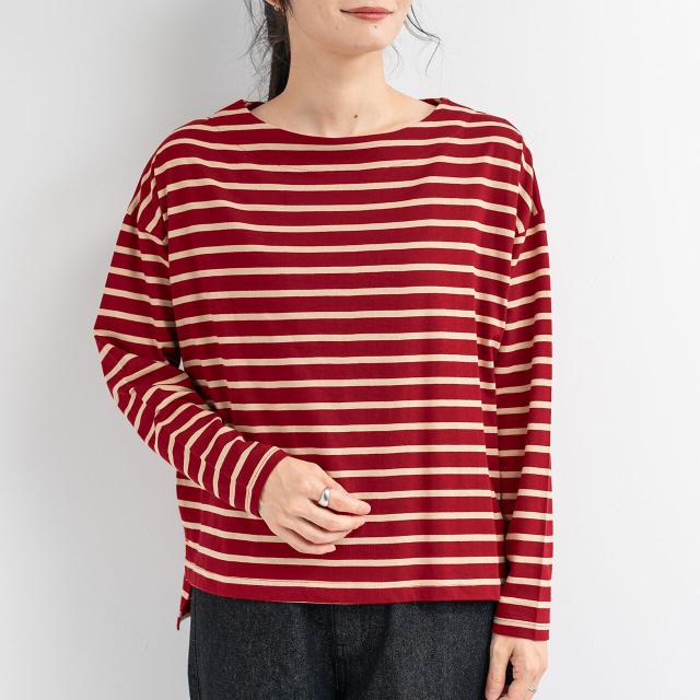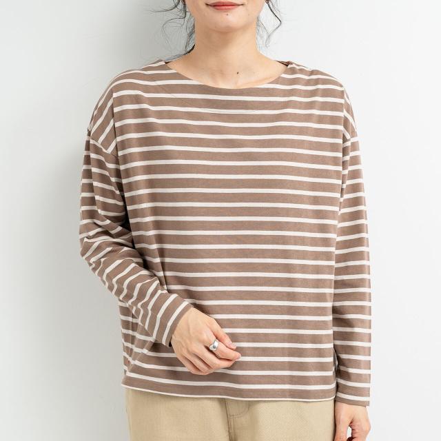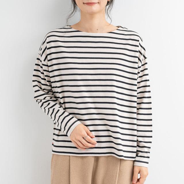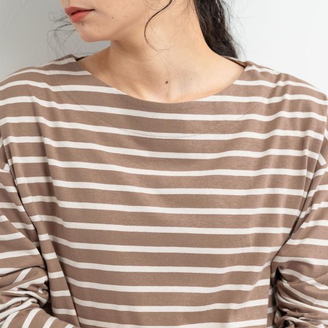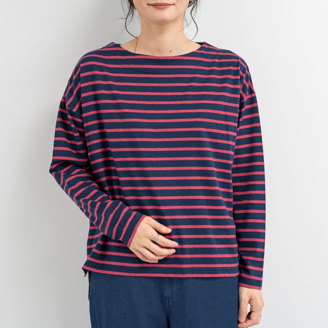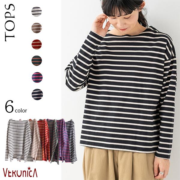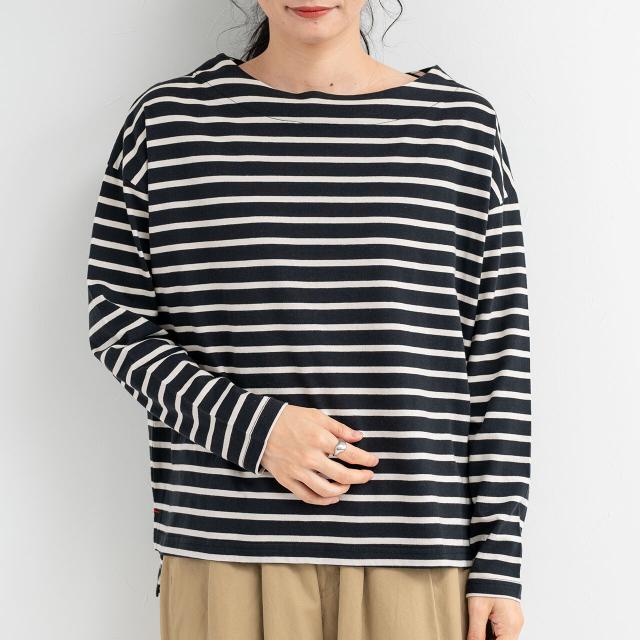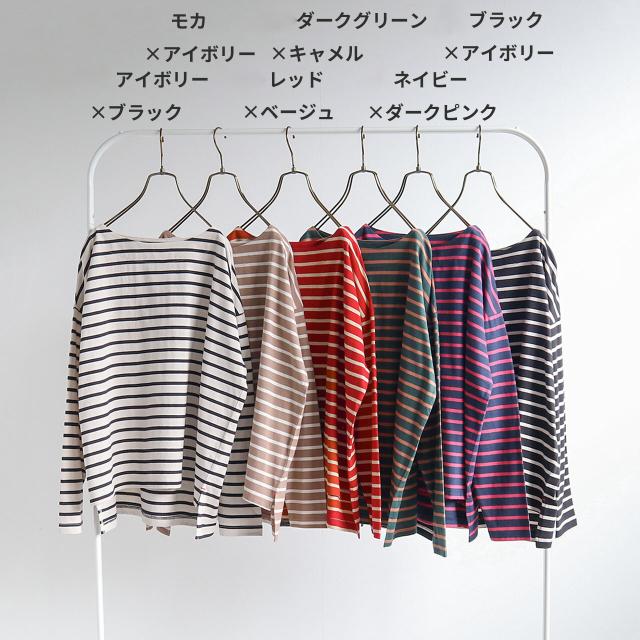 【即納】ドロップショルダー長袖ボーダートップス Tシャツ 綿100% カジュアル シンプル 春夏 AW 秋冬 新作