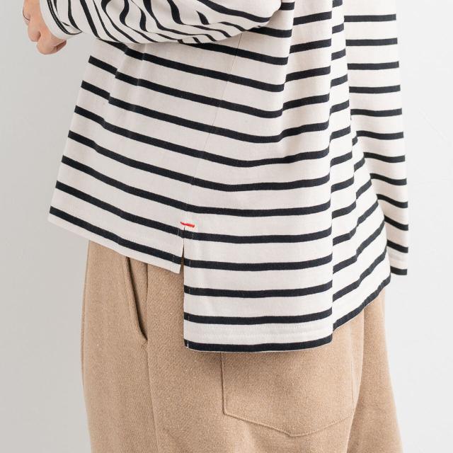 コットン100%の柔らかく肌触りの良い生地で着心地も抜群。ゆったりとしたシルエットとドロップショルダーで女性らしさをプラスしています。サイドスリットと後ろ丈を長めのディテールで着回し抜群のアイテムです。デイリーでお使いいただける万能アイテムです。