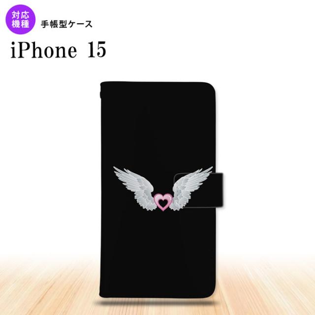 iPhone15 iPhone15 手帳型スマホケース カバー 白翼 ハート 黒 ピンク 2023年 9月発売 nk-004s-i15-dr473