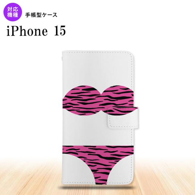 iPhone15 iPhone15 手帳型スマホケース カバー 虎柄 ビキニ ピンク 2023年 9月発売 nk-004s-i15-dr570