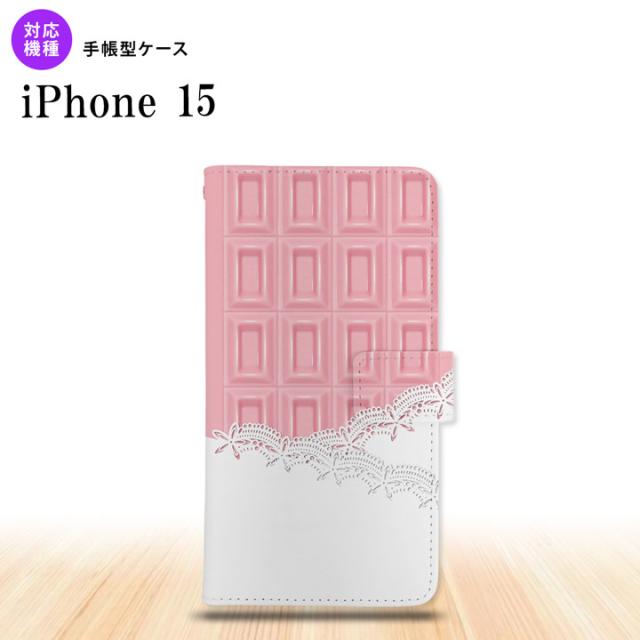 iPhone15 iPhone15 手帳型スマホケース カバー チョコ ストロベリー レース ピンク 2023年 9月発売 nk-004s-i15-dr739