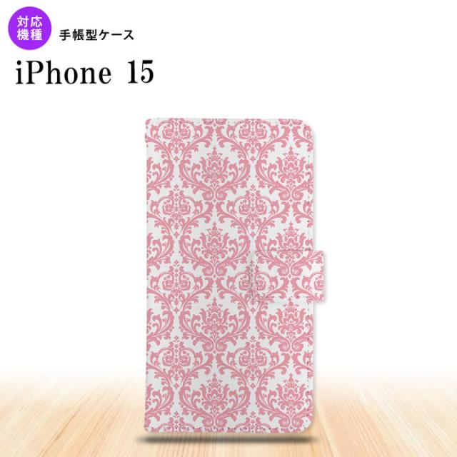 iPhone15 iPhone15 手帳型スマホケース カバー ダマスク クリア ピンク 2023年 9月発売 nk-004s-i15-dr1025