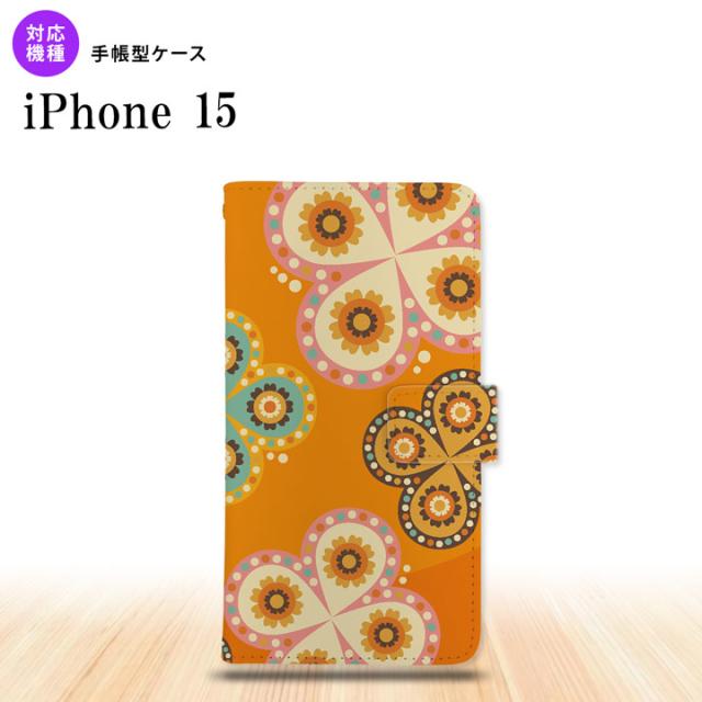 iPhone15 iPhone15 手帳型スマホケース カバー エスニック 花柄 オレンジ 2023年 9月発売 nk-004s-i15-dr1585