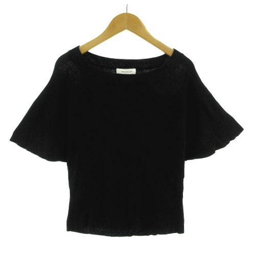 【中古】オペークドットクリップ OPAQUE.CLIP ニット カットソー 半袖 フレアスリーブ リブ ブラック 黒 38 M