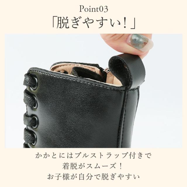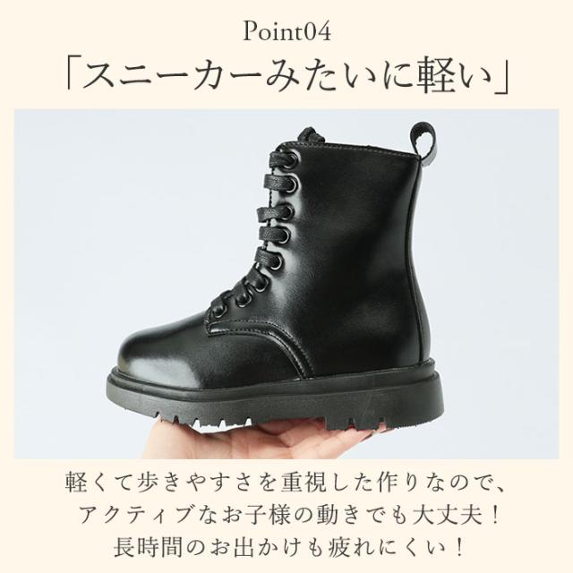 | 商品説明 | ・軽くて歩きやすい☆大人も顔負けの、編み上げキッズブーツが登場。 【編み上げデザイン】 ・大人も顔負けのオシャレな編み上げデザイン。男の子も女の子も似合うカジュアルブーツで、秋冬のオシャレを楽しもう☆ 【ファスナー式】 ・内側にあるファスナーで簡単に着脱ができるタイプ。紐の結び直しの手間がないので、お子様が自分で着脱できる! 【プルストラップつき】 ・かかとにはプルストラップが付いているので、着脱がスムーズ。使いやすい工夫がたくさん◎ 【軽い】 ・スニーカーと同じくらいの軽量さ。歩きやすさを重視した作りなので、アクティブなお子様の動きでも大丈夫! 【フォーマルシーンで】 ・普段のお出かけはもちろん、発表会や結婚式、卒業式などのフォーマルシーンでも使える! 【やわらか素材】 ・内側は柔らか素材を使用した生地なので、暖かく優しい履き心地。長時間の着用もストレスフリー。 【滑りにくい】 ・ソール部分には滑り止め加工を施し、雨の日にも安心の仕様。 |