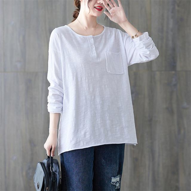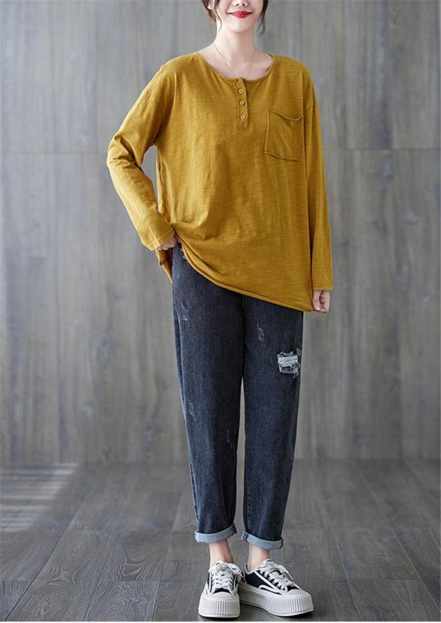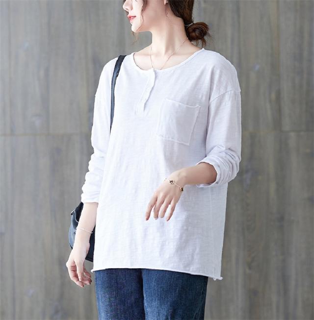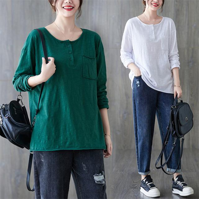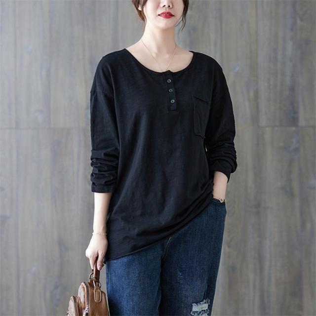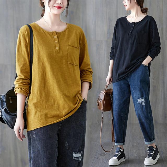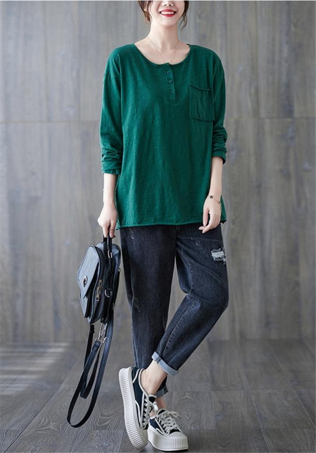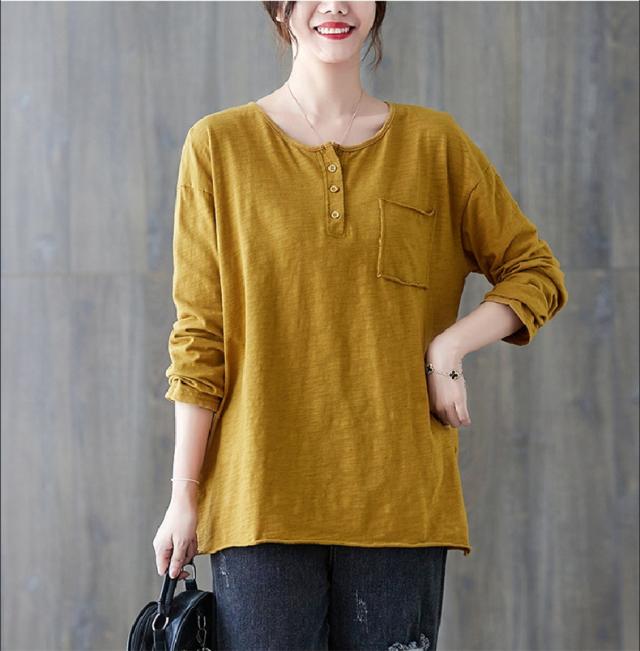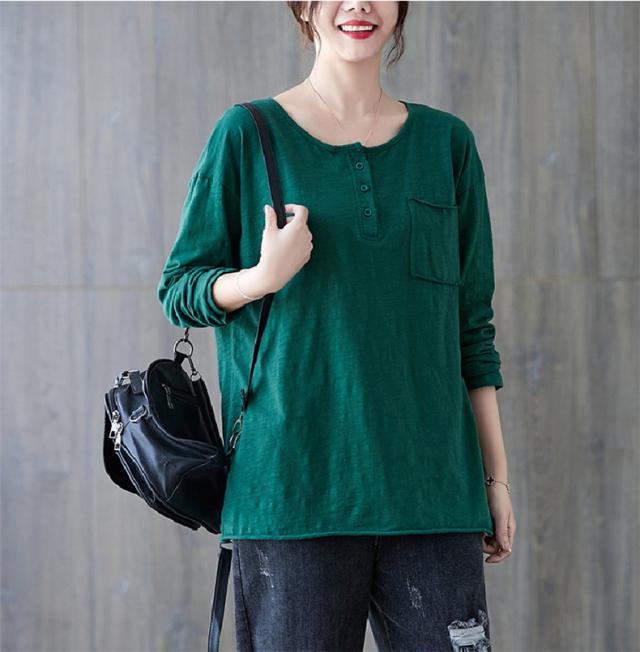 秋シャツ カットソー シンプル レディース プルオーバー クルーネック 長袖 ゆったりめ 綿 さりげなく体型カバー レトロ カジュアル風 大人っぽい雰囲気