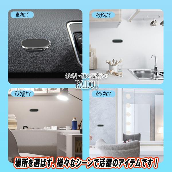 強力マグネット&両面テープでしっかりと固定がされ、運転席の視界を妨げないコンパクトサイズの車載マグネットスマートフォンホルダーです。