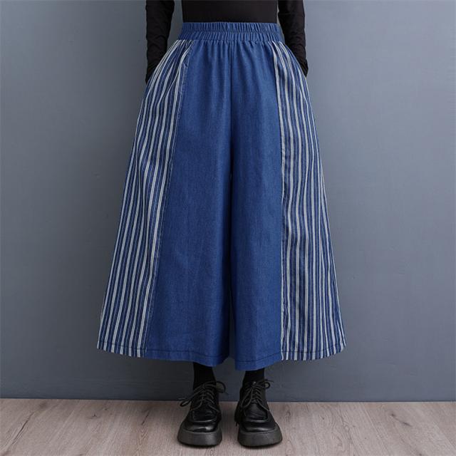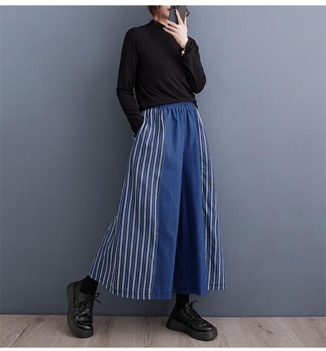デニムパンツ ボトムス レディース ワイド ストレート 大人っぽい配色 切り替え レトロチックなパンツ ナチュラルな風合いが魅力 オールシーズン着用OK