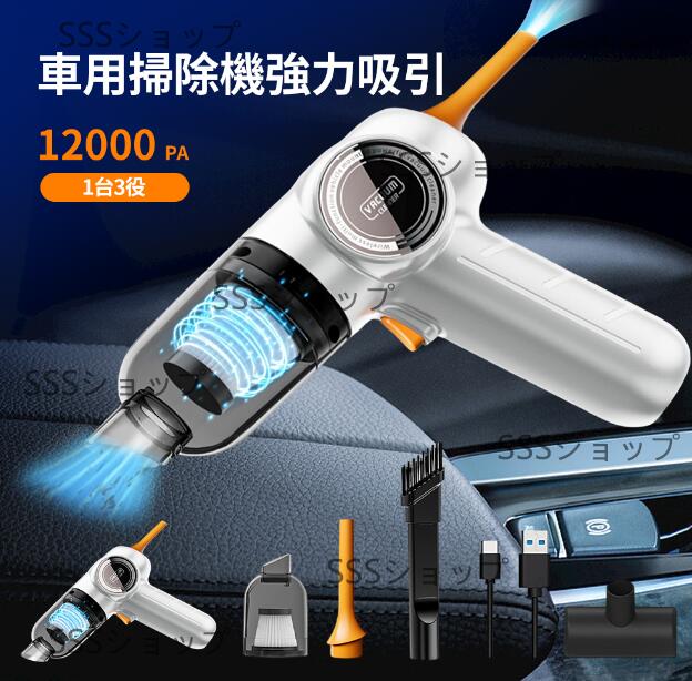 ハンディクリーナー 車載掃除機 12000PA強力吸引 車用カークリーナー コードレス USB充電式 乾湿両用 多種類ノズル ミニポータブル