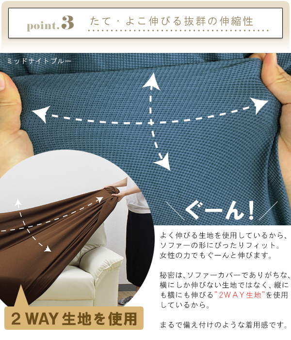 ナノファイン 制菌率 99.9% ソファーカバー L字 カウチソファー 3人 肘付き 3人掛け gaufre 伸びる 伸縮素材 ストレッチ ゴーフル ワッフル ソファカバー 肘かけあり
