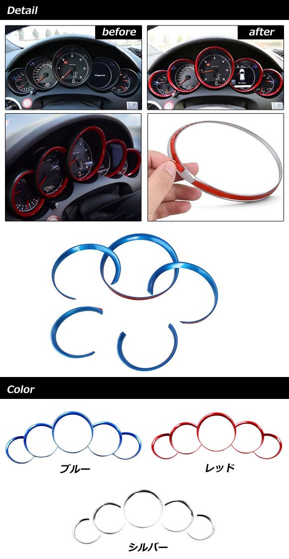 メーターガーニッシュ ポルシェ 911 991 2011年11月〜2020年09月 レッド ABS樹脂製 入数:1セット(5個) AP-IT3175-RD