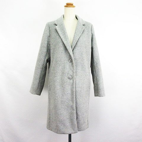 【中古】ショコラフィネローブ チェスターコート アウター 長袖 ハーフ丈 ウール混 L グレー ※EKM レディース