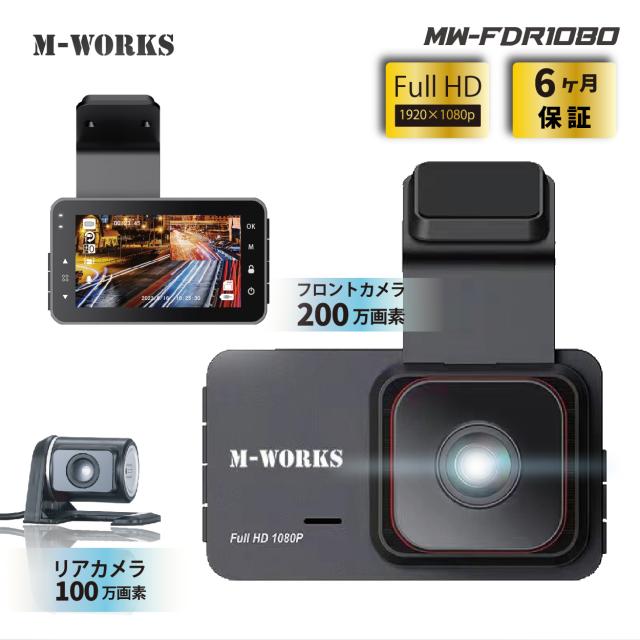 【M-WORKS】リアカメラ付きFHDドライブレコーダー フルハイビジョン フルHD 200万画素 前後カメラ Gセンサー HDR サイクル録画 駐車監視機能