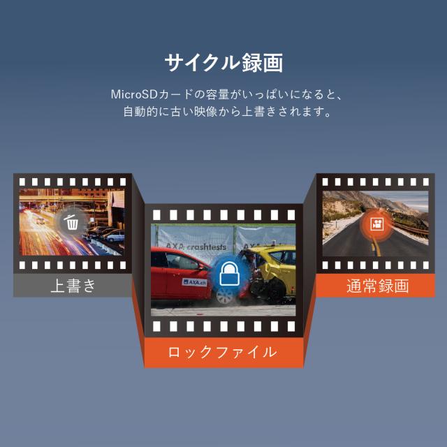 ★\サイクル録画/MicroSDカードの容量がいっぱいになると、自動的に古い映像から上書きされます。