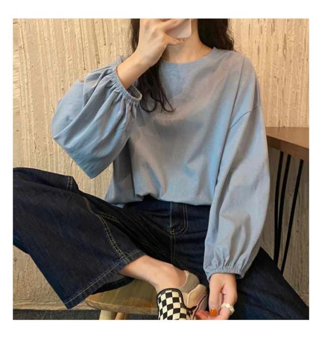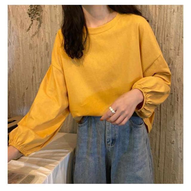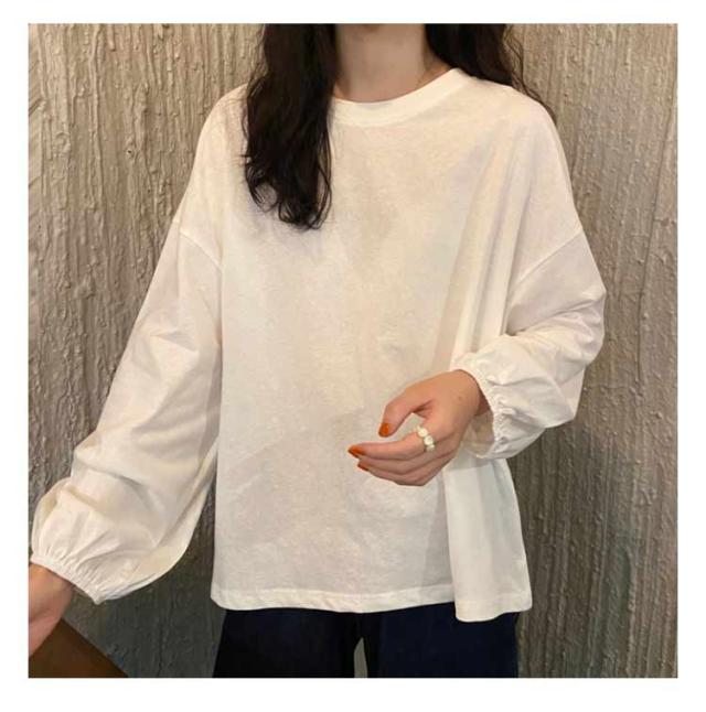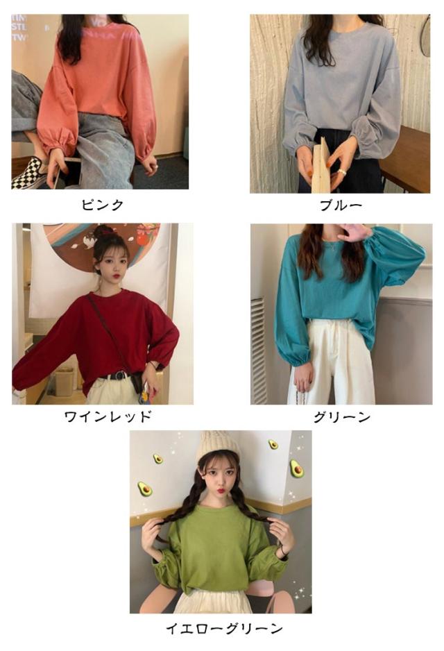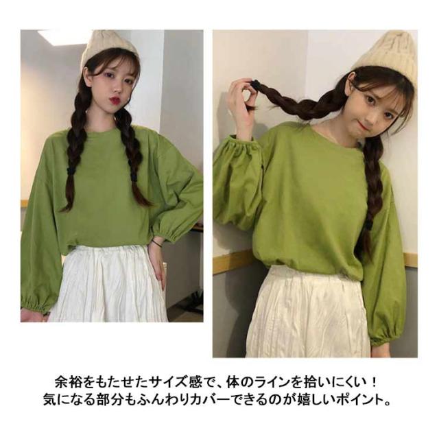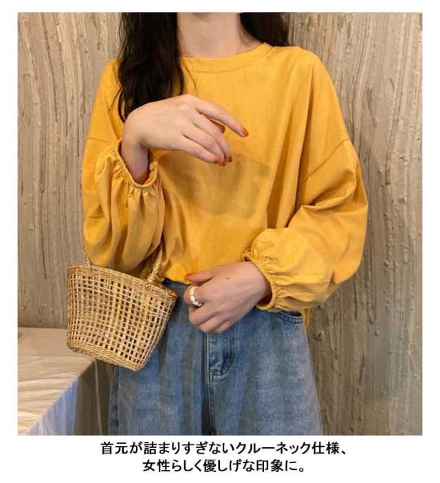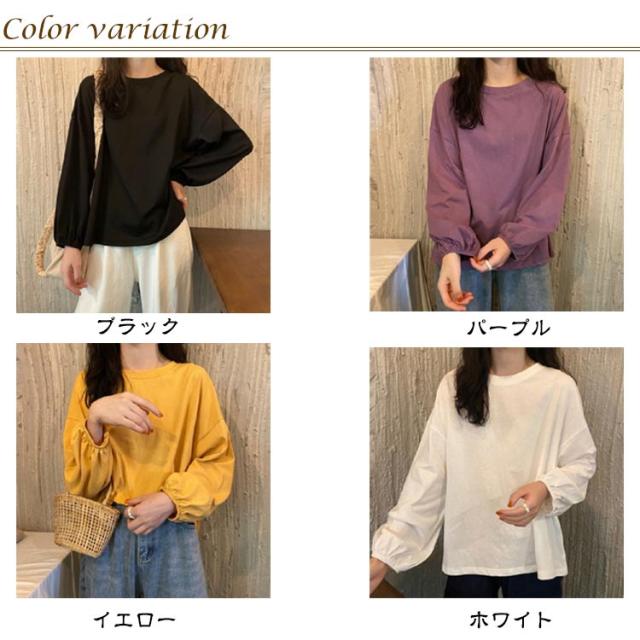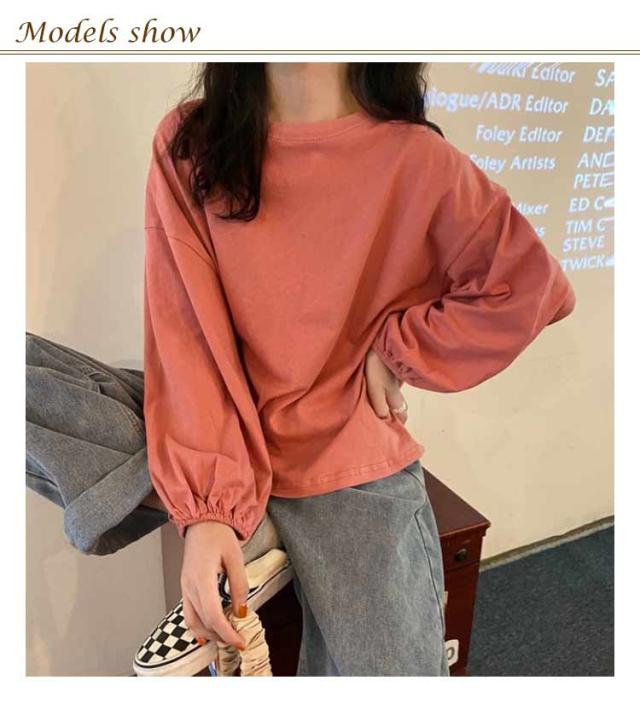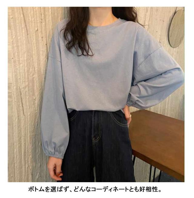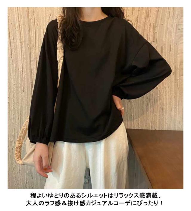 送料無料 トップス カットソー クルーネック Tシャツ tシャツ レディース 無地カットソー 長袖tシャツ パフスリーブ シャツ インナー ロンティー 重ね着 ゆったり ドロップ シンプル おしゃれ カジュアル きれいめ 大人 通勤 通学