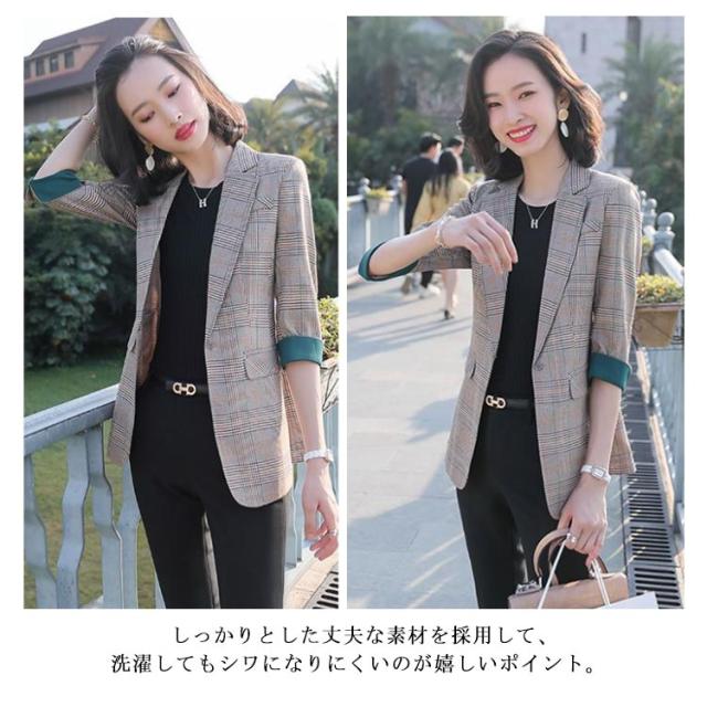 テーラード ジャケット 長袖 9分袖 グレンチェックジャケット 送料無料 チェック 柄 アウター レディース テーラードジャケット 通勤 オフィス お呼ばれ フォーマル カジュアル 事務服 上品 おしゃれ 大きサイズ ロールアップ可