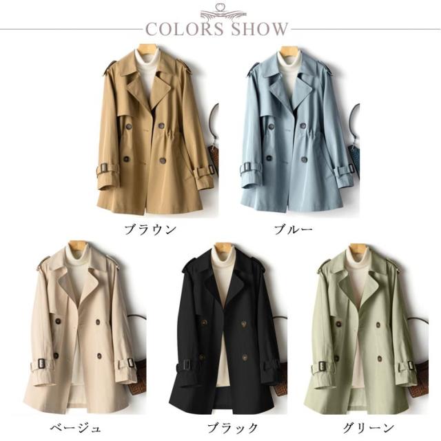 裏地付き 秋服 トレンチコート レディース アウター 送料無料 コート ステンカラーコート ミドル丈 通勤 OL 春 秋 定番 20代 30代 40代 紐調整 ブラウン ブルー ベージュ ブラック グリーン